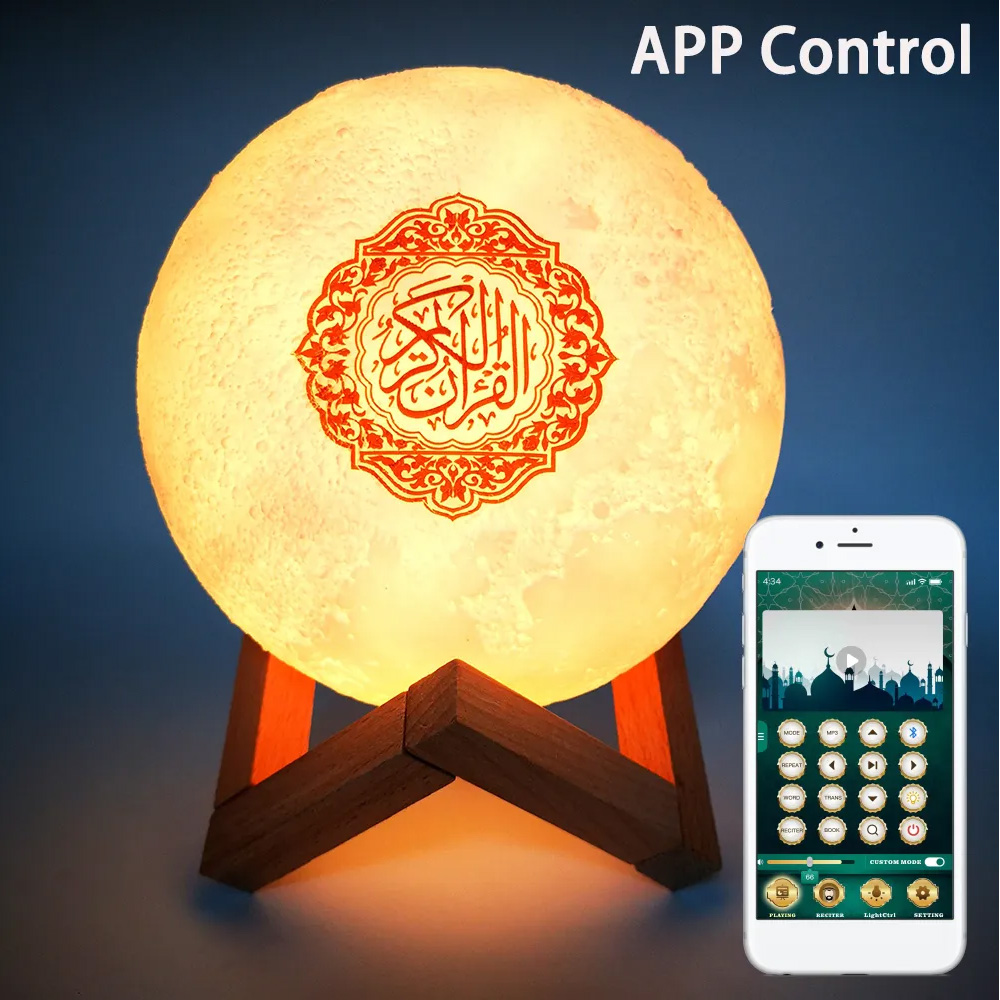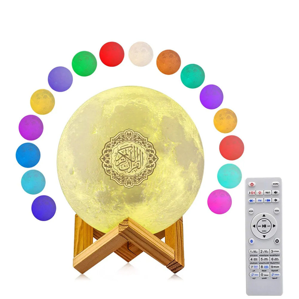 ✨ استمع لتلاوة القرآن الكريم بصوت 14 قارئ و14 لغة مختلفة، وزين منزلك وسيارتك بإضاءة ليلية مميزة بـ 7 ألوان Adjustable. Comes مع قاعدة خشبية أنيقة وجهاز تحكم عن بعد لراحة استخدام.