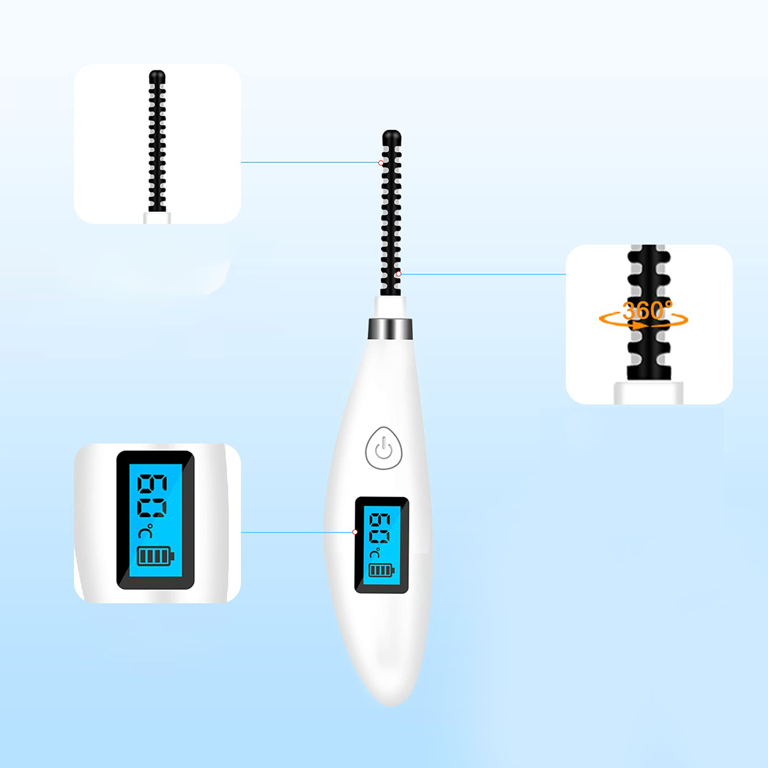 – اداة فرد الرموش الكهربائية، قابلة لإعادة الشحن مع مشط للرموش للتخلص من تجاعيد الرموش.