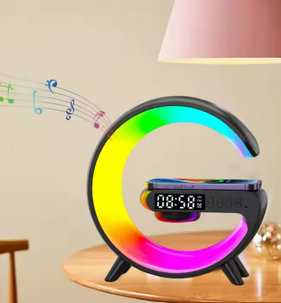 **شاحن لاسلكي بمكبر صوت ومصباح LED – عملي وأنيق**