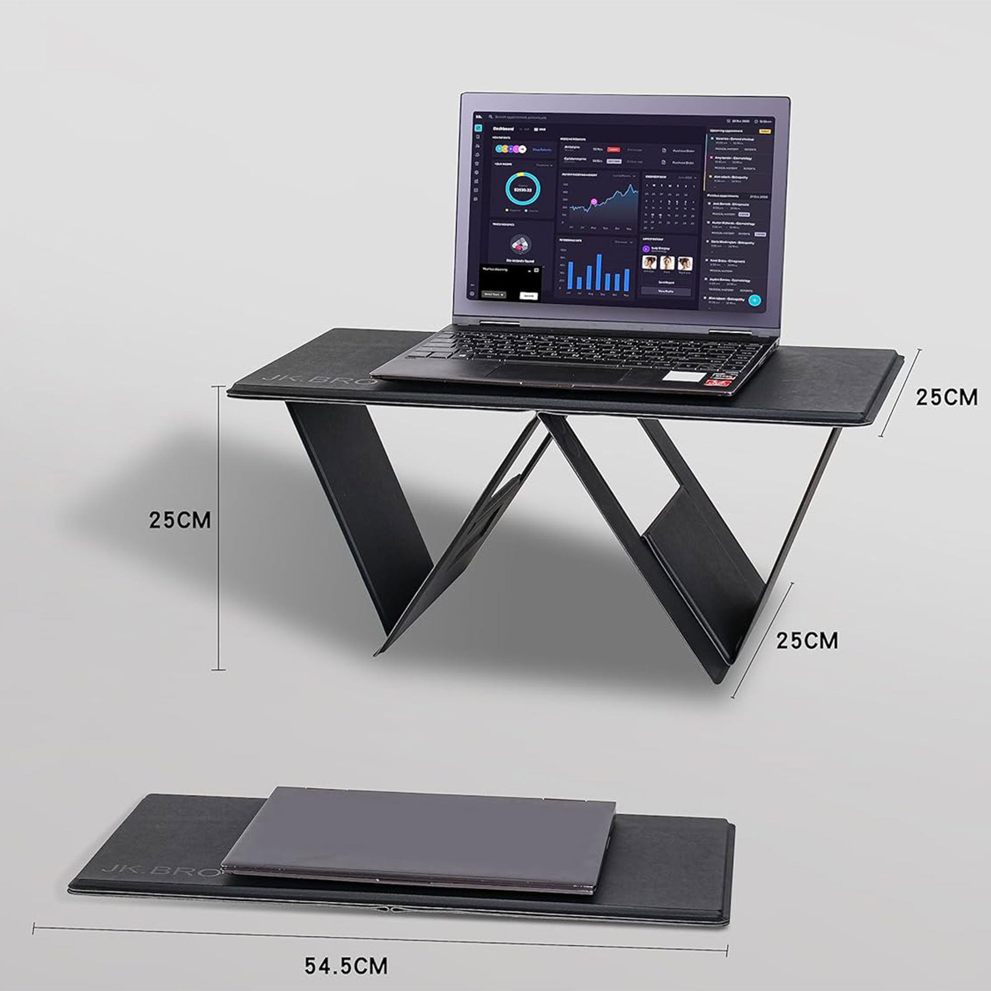 – عند الفتح: 25 سم (ارتفاع) × 45 سم (عرض) × 20 سم (عمق).