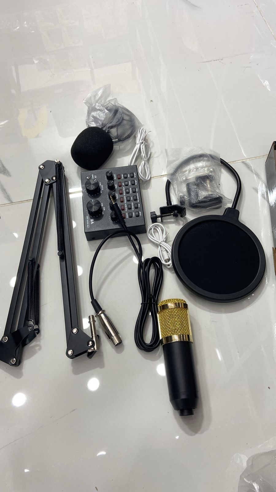 • طقم احترافي متكامل للبودكاست (ميكروفون مكثف, كارت صوت خارجي, كابلات التوصيل, حامل للمايكروفون)