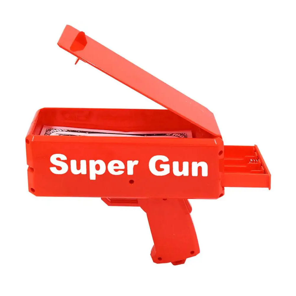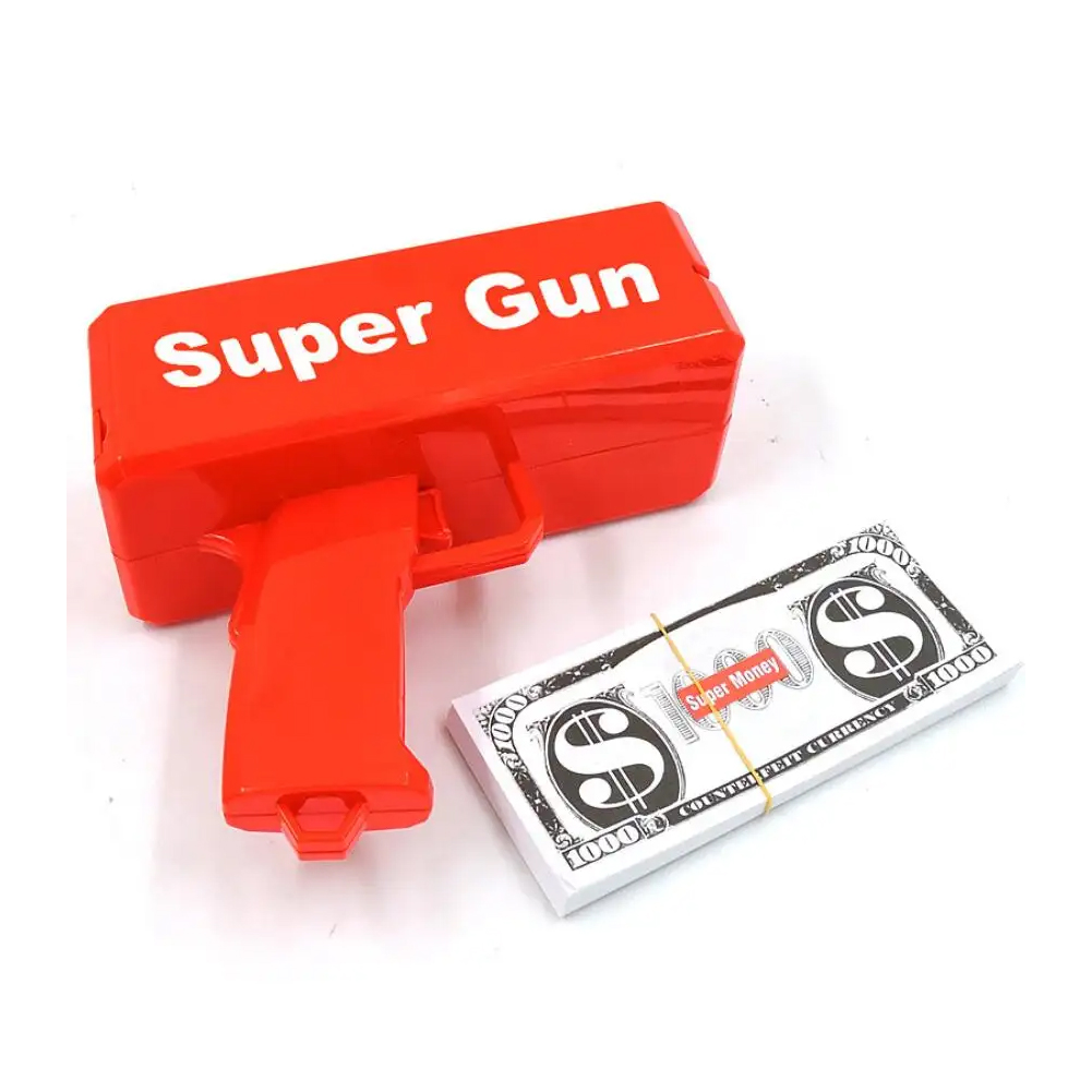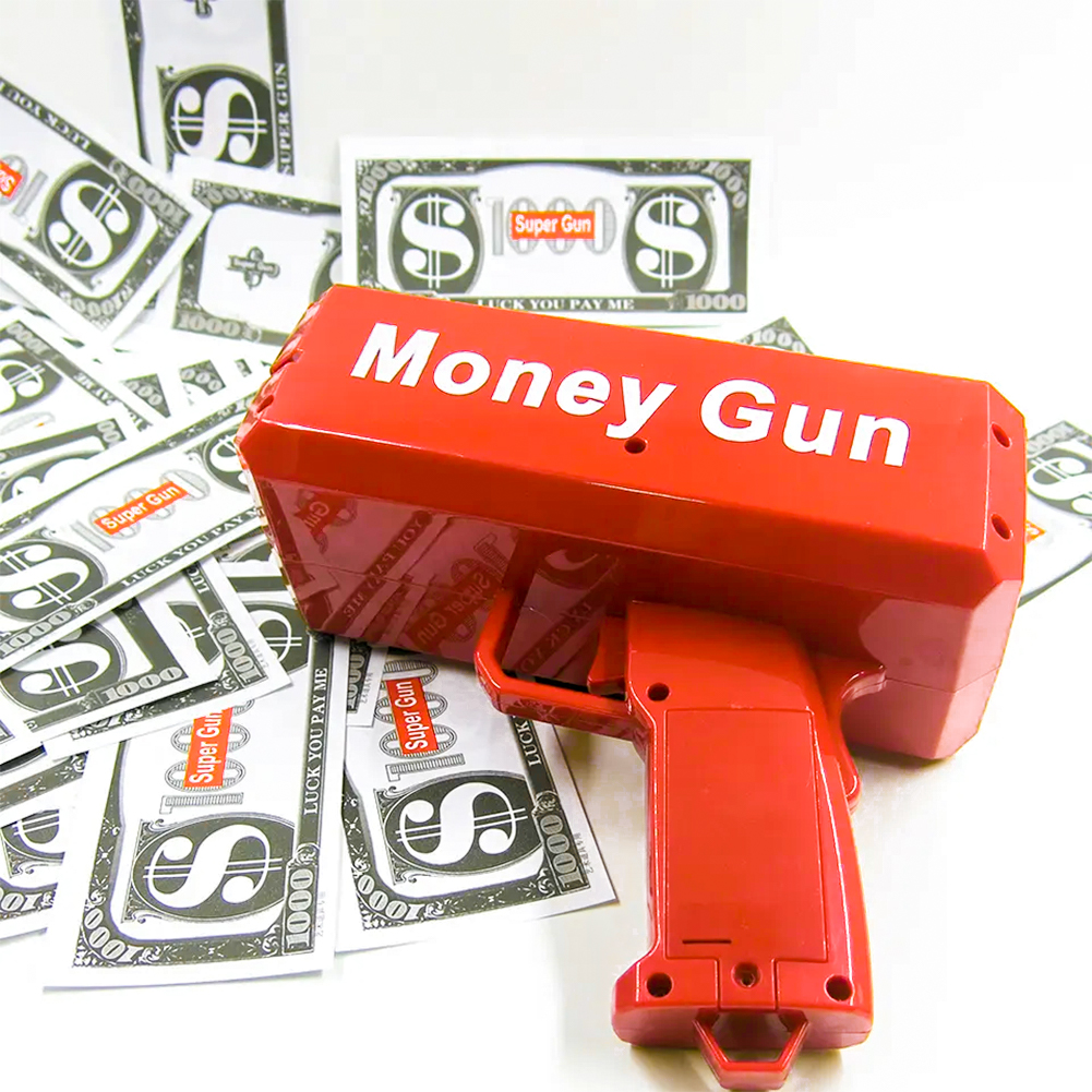 لا يحتاج المسدس إلى أي تعقيدات؛ فقط افتح الغطاء، ضع الأوراق (فلوس حقيقية أو مزيفة، نشرات، قسائم)، واضغط على الزناد لتجربة مفعمة بالمرح.