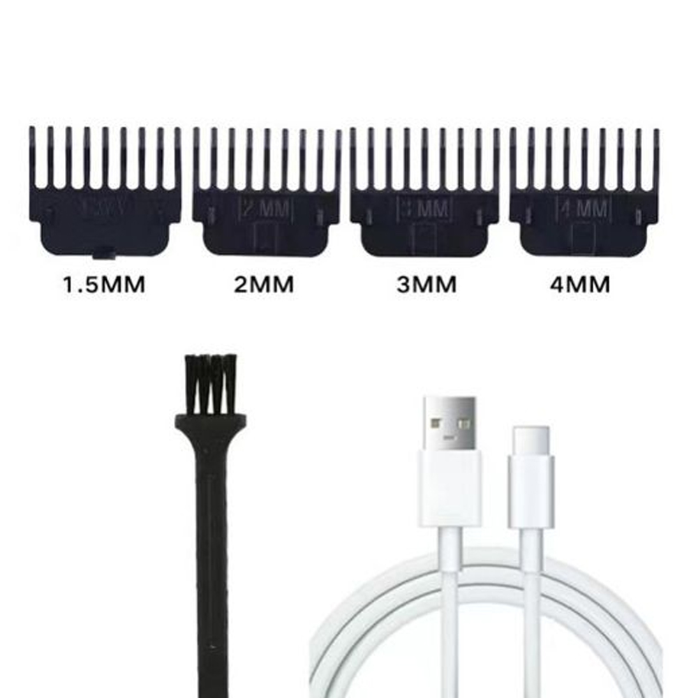 📦 **محتويات العبوة:** ماكينة + 3 أمشاط + فرشاة + كابل شحن.