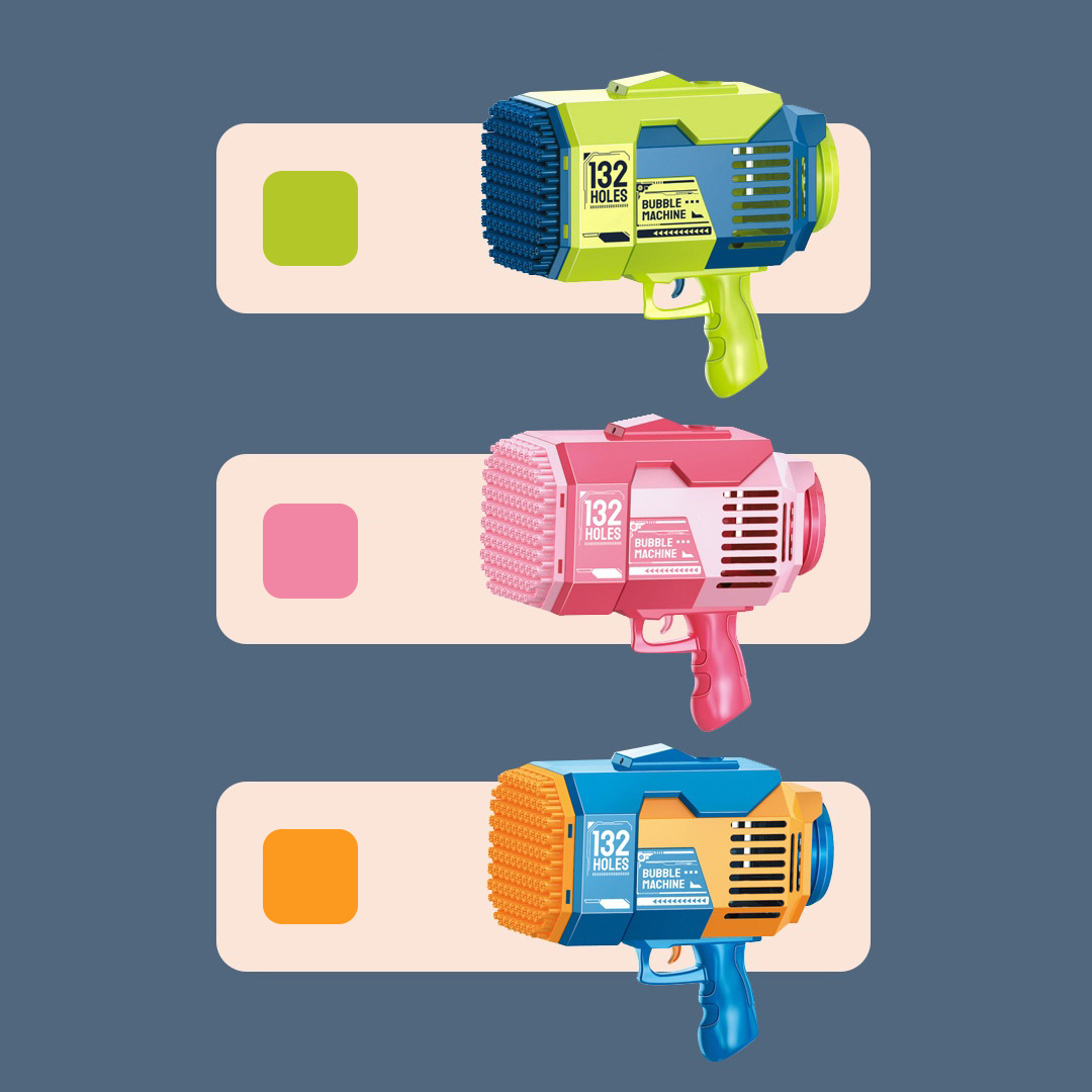 – تشتمل مجموعة مسدس الفقاعات على مسدس فقاعات واحد وزجاجتين من محلول الفقاعات وملصق واحد وصينية فقاعات وبطارية قابلة لإعادة الشحن.