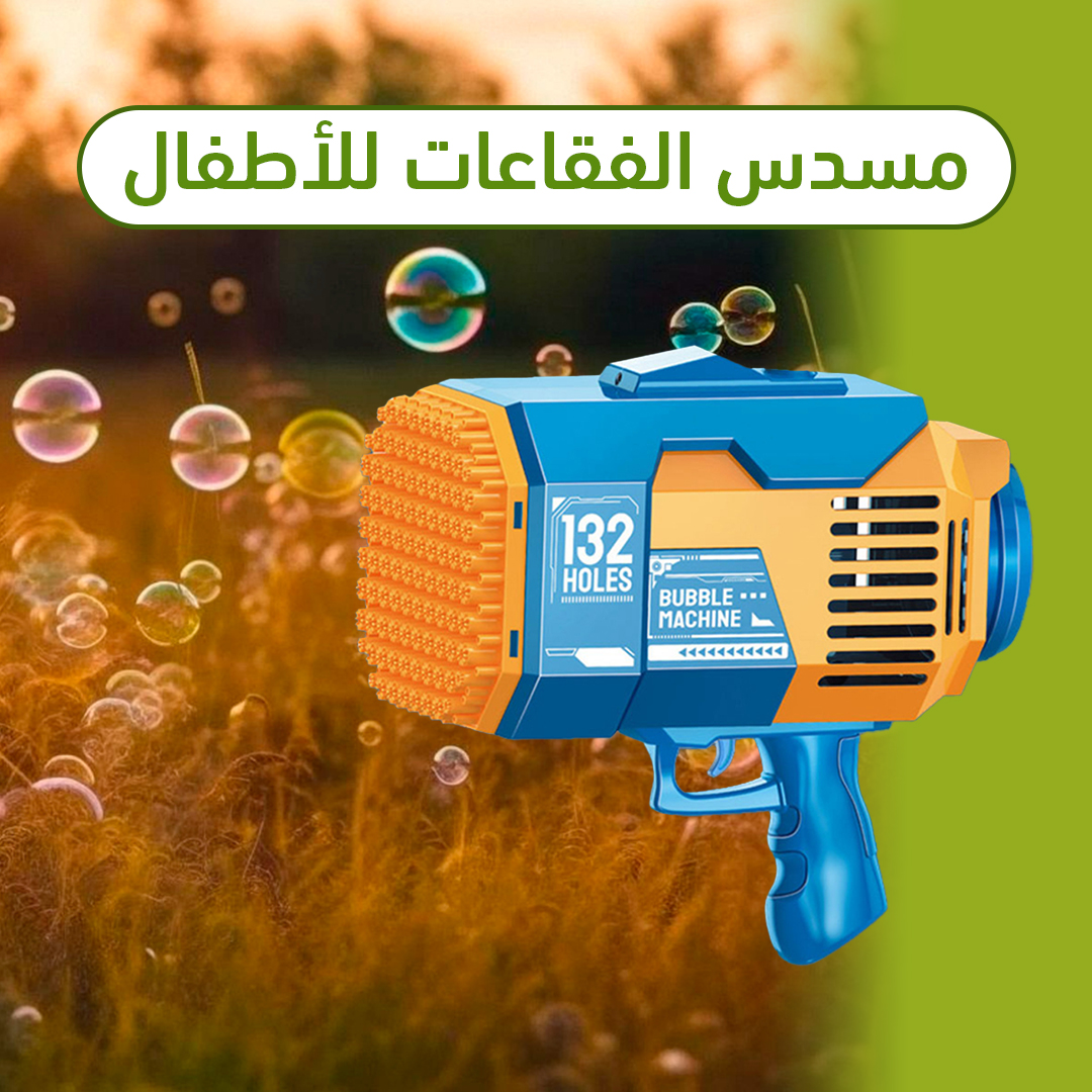 – يرجى استخدام محلول فقاعات خاص وليس صابون لسلامة الاطفال وعمل فقاعات أكثر.