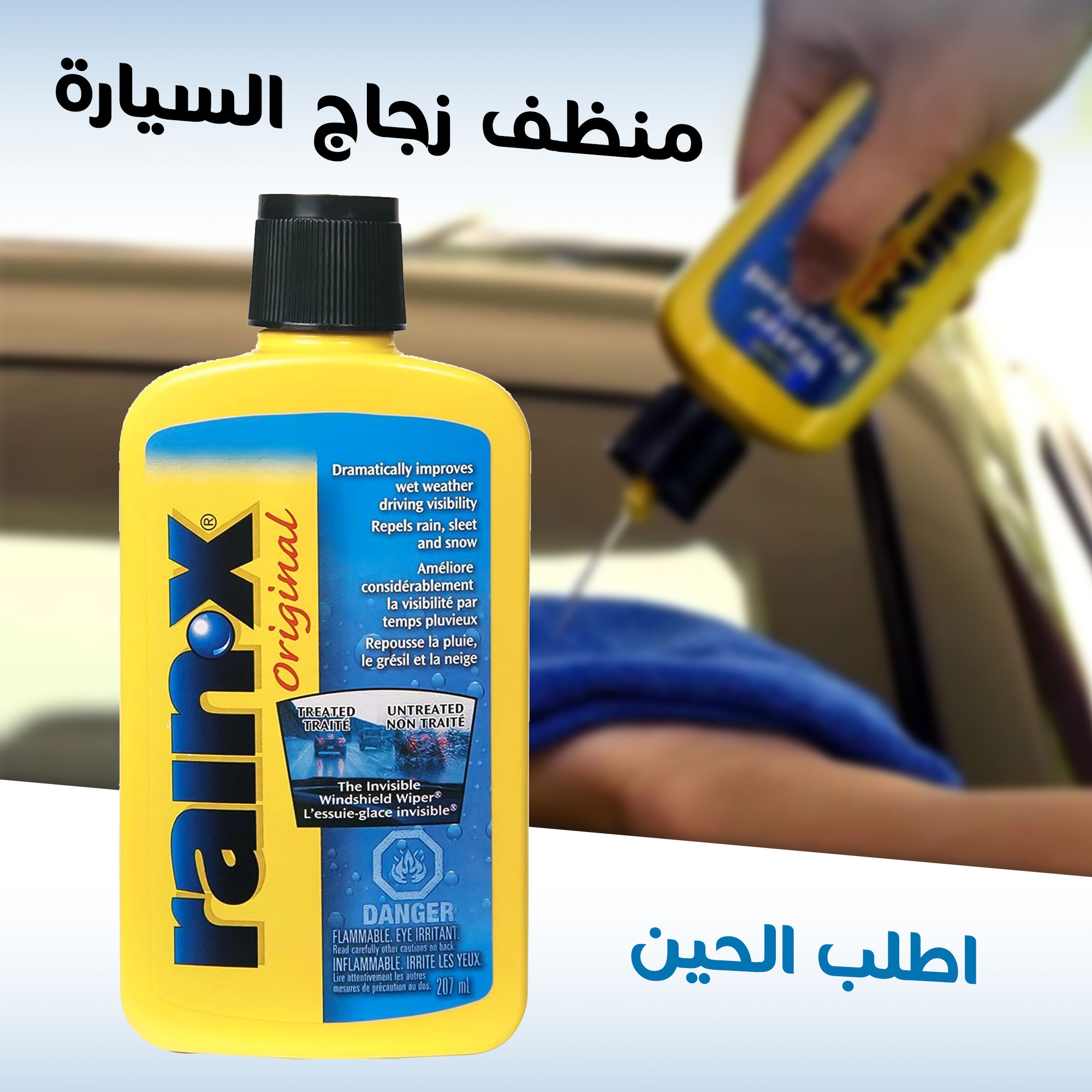 – يرجع الزجاج صافي ويشيل التشويش، سواء لزجاج السيارة أو غيره.