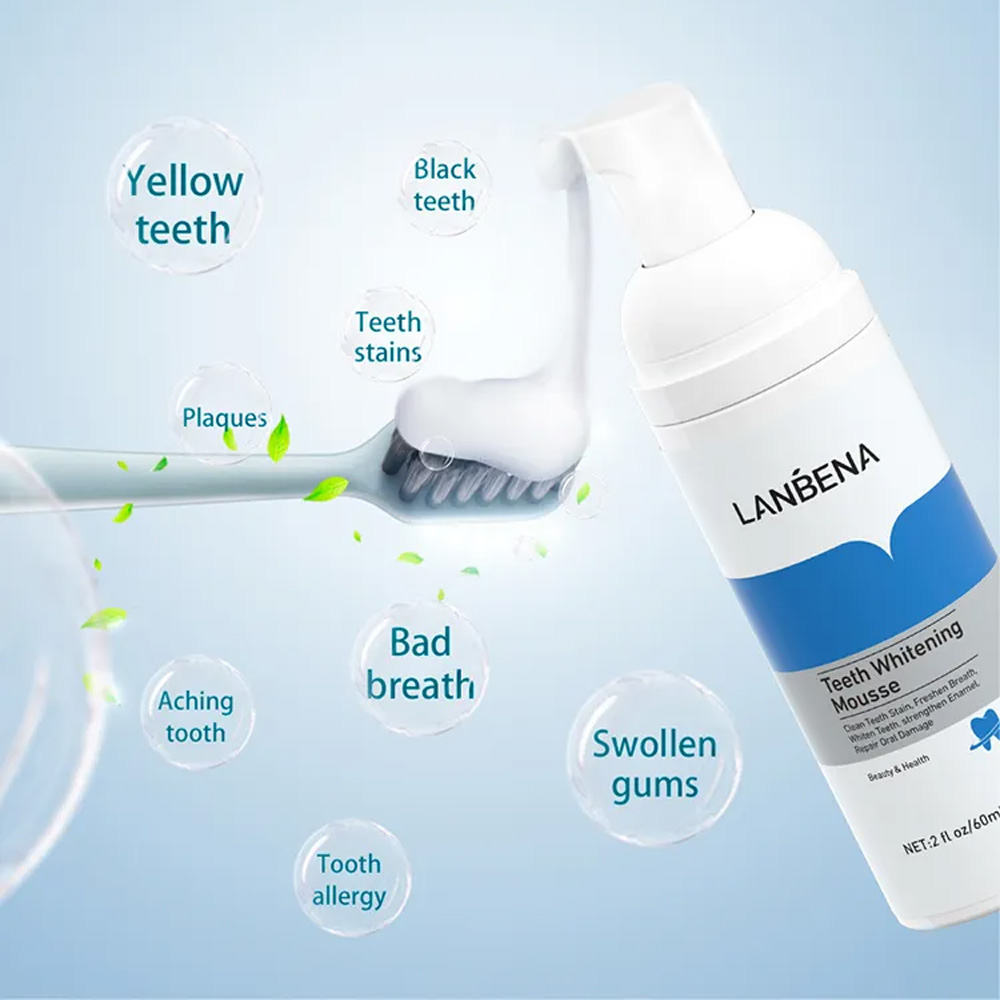 – جرب موس تبييض الأسنان الفعّال من LANBENA واستعيد ابتسامتك الساحرة. تركيبة فريدة تعمل على إزالة البقع وتفتيح لون الأسنان بلطف وأمان.